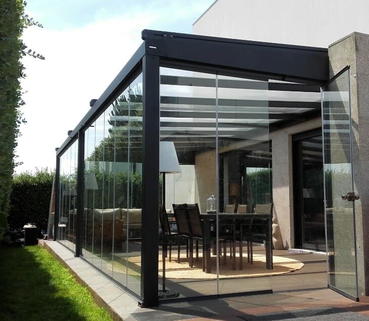 Particularmente moduláveis sobretudo no plano residencial, as componentes interligadas remetem potencialidades diferenciadas em pátios, varandas e terraços. Além disso, um jardim inverno exterior entendido como extensão natural espaço, em vidro temperado de segurança ou opcionalmente com isolamento melhorado, o propósito conceitual agrega praticidade, proteção e modernidade.