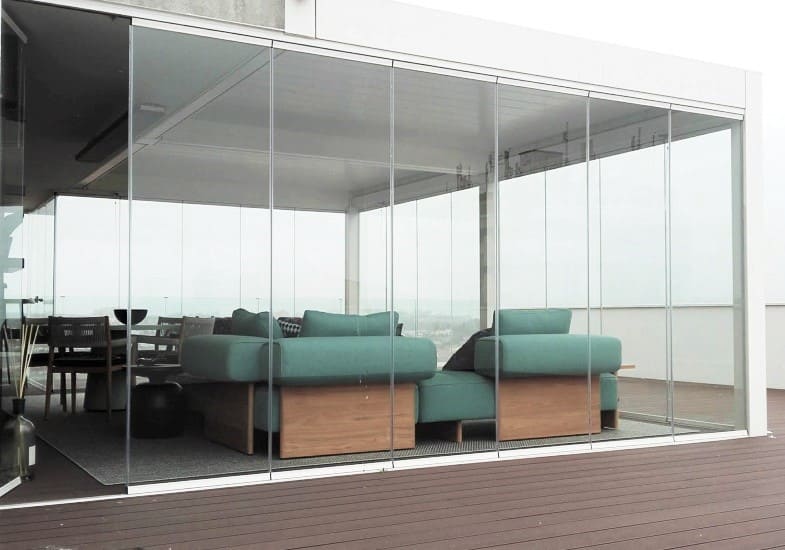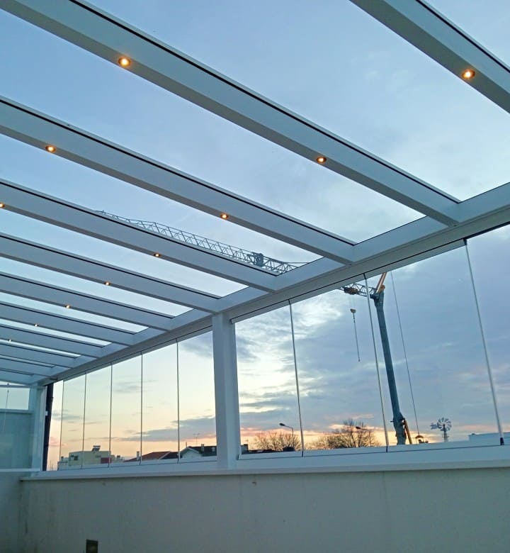 Fomentando ambientes mais integrados e consequentemente mais agradáveis, a delimitação segmentada por vidros movíveis projeta ao panorama habitacional um modelo envidraçamento vertical modular em pátios, jardins de inverno, terraços, pérgolas, logradouros, e, compatível na hotelaria, restaurantes, esplanadas e áreas turísticas.