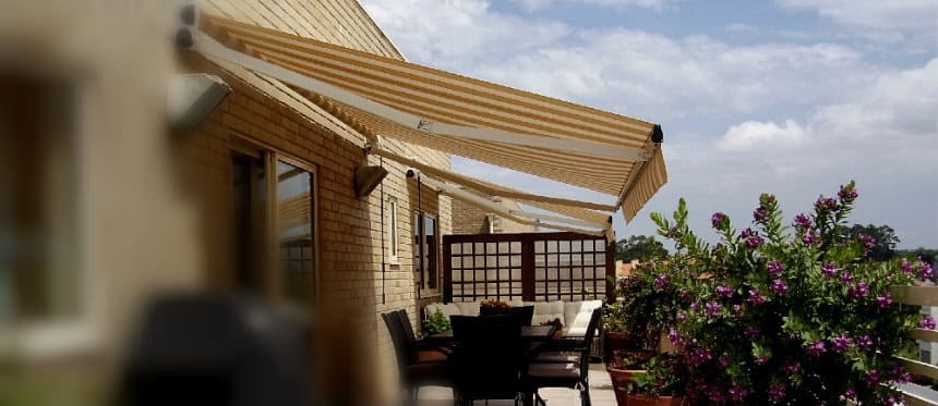 Toldos contribuindo a economizar energia durante todo ano, conferem bloqueio à entrada excessiva luz solar no Verão, enquanto que, no Inverno, em conjunto com outros fatores, ajudam a reduzir as perdas calor gerado no interior.
